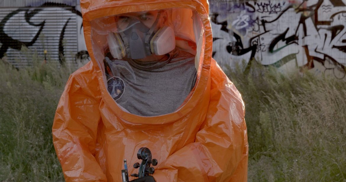 The video Lament, featuring violin music composed and performed by Edwin Montgomery, followed the broadcast. The music is slow and sad: a single violin playing in minor key, playing over found footage of events including the Exxon Valdez oil spill, multiple wars throughout history, coal mining, the Bikini Atoll nuclear test, the 2019-2020 Australian bushfires, animals starving, landscapes changing due to climate change, refugee caravans seeking escape from persecution and powerful people in army uniforms.