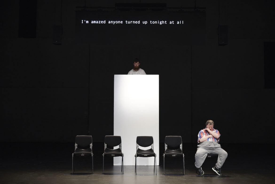 The last time Back to Back Theatre were at Melbourne Festival it was in the stunningly ambitious Lady Eats Apple. Staged in Hamer Hall, a seating bank was constructed on the stage. We began seated in a womb-like tent, as God created the earth. Then the white curtain dropped and we were faced with the view of the 2500 red velvet seats of the theatre, actors moving between the seating levels in a series of scenes about life and love.